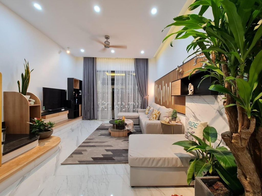 Phòng khách được chăm chút với những mảng màu kem – vàng ấm áp, kết hợp cùng đèn chùm tinh xảo và nội thất bọc nệm cao cấp, tạo cảm giác vừa xa hoa vừa gần gũi. Khu bếp và phòng ăn liên kết mềm mại với tổng thể, vẫn giữ tinh thần cổ điển nhưng được tối ưu hoá tiện nghi, đáp ứng hoàn hảo nhu cầu sinh hoạt của gia đình hiện đại.
